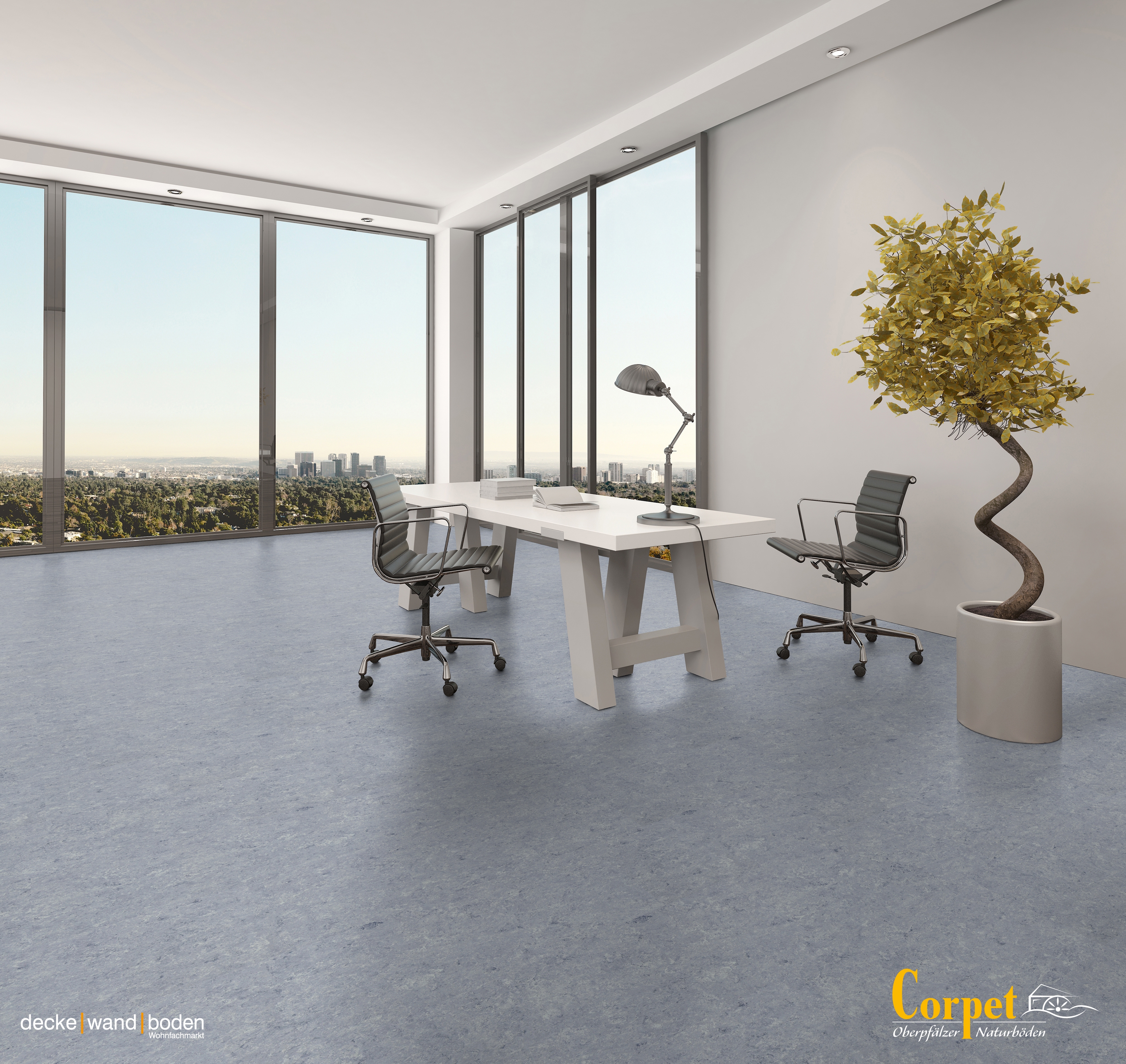corpet Linoleumboden linoColor Certo Azuro Sky Raumbild