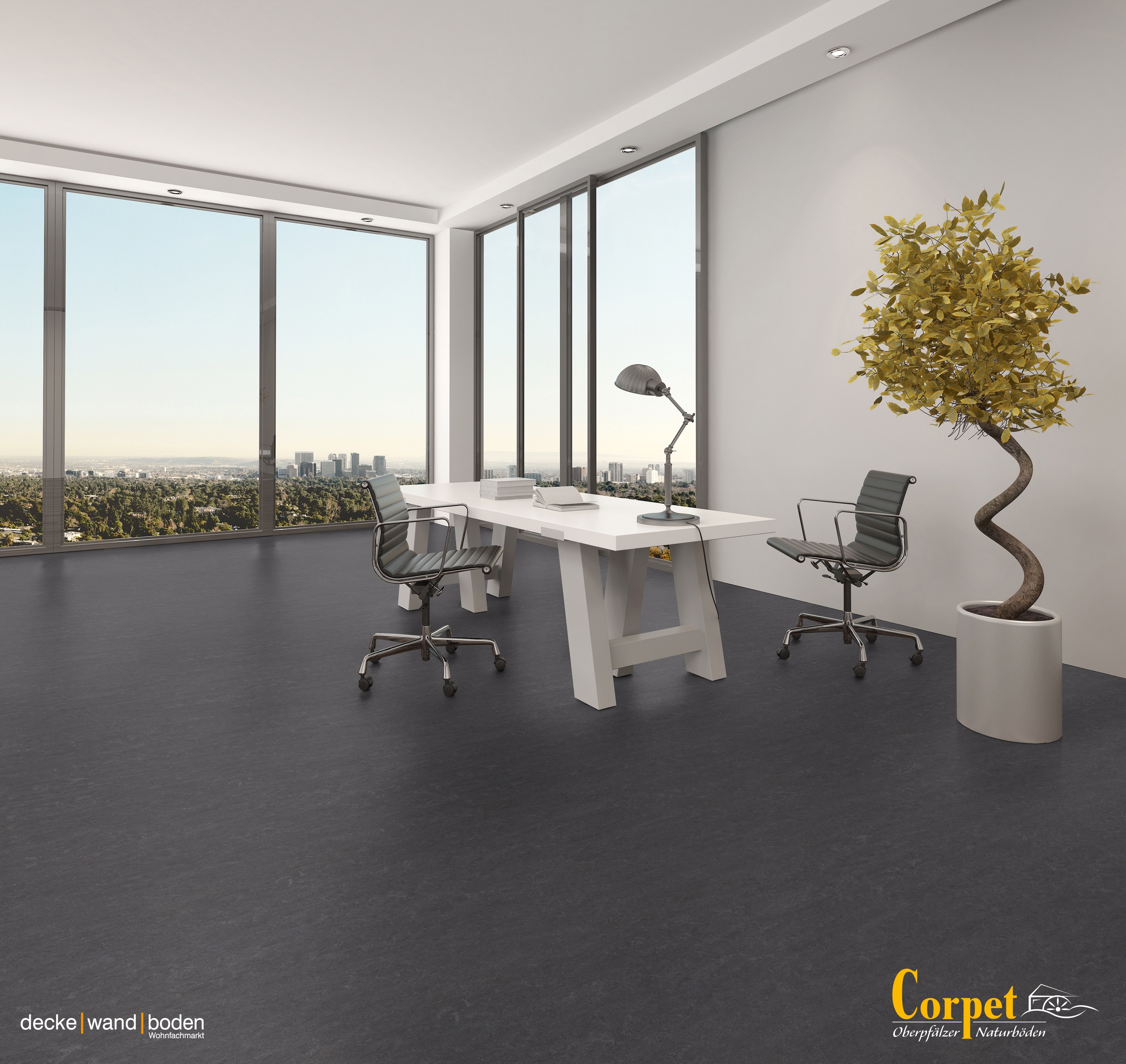 corpet Linoleumboden linoColor Certo Graphit Raumbild