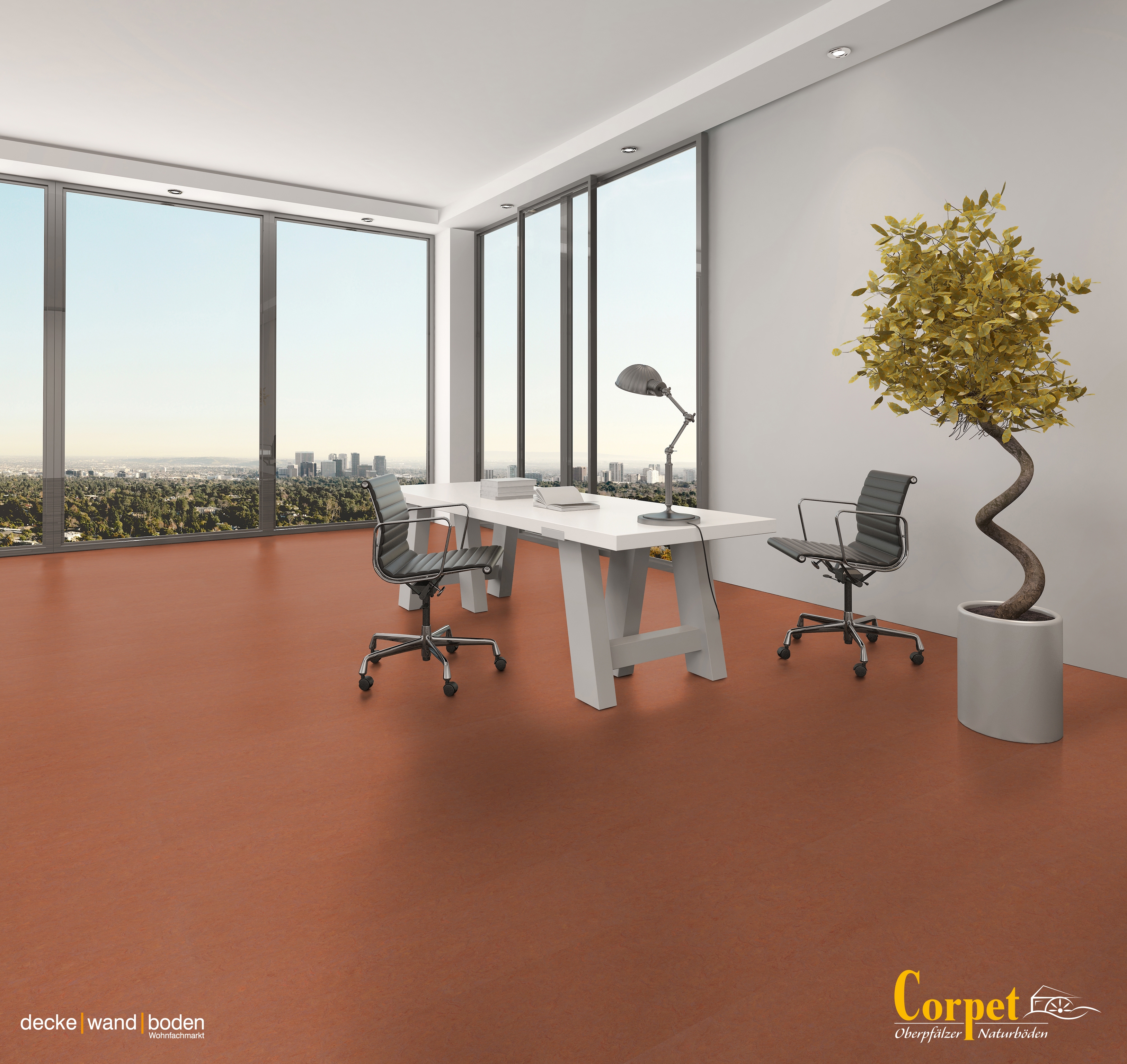 corpet Linoleumboden linoColor Certo Kupfer rot Raumbild